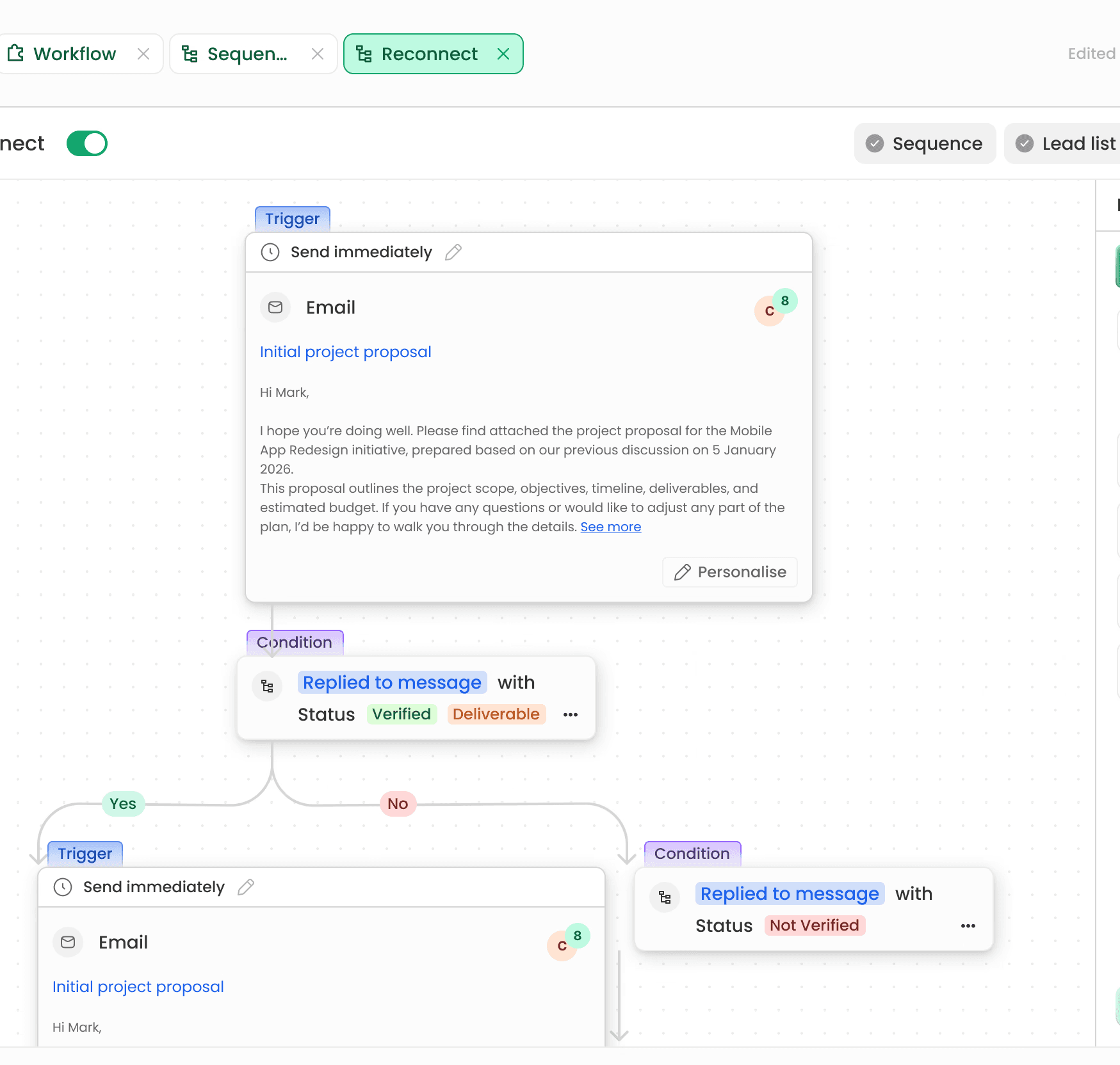 Automatically follow up on leads across email, WhatsApp, and LinkedIn.